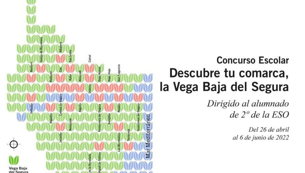 El Consorcio para el Desarrollo Económico de la Vega Baja (Convega) ha convocado la segunda edición del CONCURSO ESCOLAR: “DESCUBRE TU COMARCA, LA VEGA BAJA DEL SEGURA”, en el marco del Plan Dinamización y Gobernanza Turística, que Convega desarrolla con la colaboración de Turisme Comunitat Valenciana y el apoyo de la Diputación Provincial de Alicante.