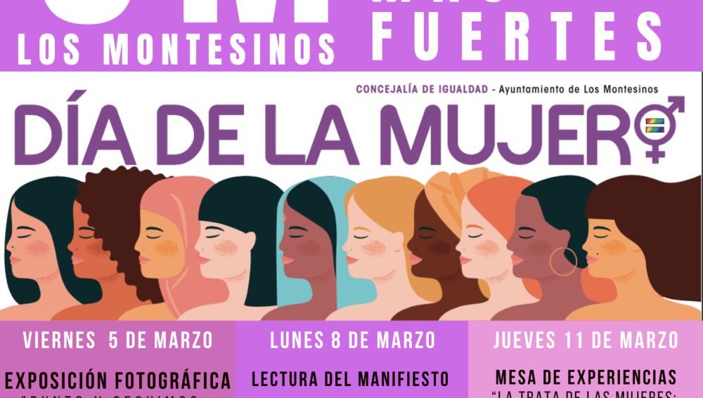 que enfrentar en este nuevo siglo”. La concentración, “que se realizará respetando la distancia y contará con todas las medidas de seguridad contra la COVID-19, nos recordará a las 12h del día 8 de marzo en la plaza del Ayuntamiento que ‘Nos queremos vivas, libres y juntas’. Será el momento de leer el manifiesto en el que reivindicaremos los derechos de la mujer, de alzar la voz por quienes no pueden hacerlo y de recordar a aquellas a quienes han callado para siempre, porque este año de pandemia ha sido especialmente doloroso para las mujeres que sufren violencia dentro del hogar”, ha declarado Ana Belén Juárez, quien ha apuntado que durante estos días una pancarta colgará del balcón del Ayuntamiento conmemorando el 8M y que el consistorio será iluminado de color violeta como símbolo del apoyo que el Ayuntamiento de Los Montesinos, la administración más cercana a las personas que viven aquí, presta a la mujer y a las medidas necesarias para que la igualdad entre hombres y mujeres no sea solo un deseo sino algo real y tangible”.