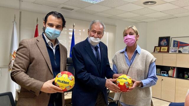 En la mañana de hoy el alcalde de Torrevieja, Eduardo Dolón, acompañado de la edil de Deportes, Diana Box, han recibido en el Ayuntamiento al presidente de la Federación Internacional de Balonmano (IHF), Dr. Hassan Moustafa, al presidente de la Real Federación Española de Balonmano (RFEBM) y vicepresidente del Comité Olímpico Español (COE), Francisco Blázquez
