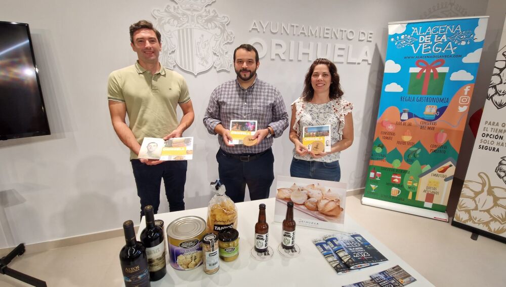 Esta mañana ha sido la presentación del evento en el Ayuntamiento de Orihuela y en ella han intervenido Gonzalo Montoya, edil de Turismo, Álvaro Tortosa, empresario de Cerveza Segura y Pilar Caselles, empresaria de Alacena de la Vega. Ambos comerciantes locales mostrarán sus productos en el expositor de Orihuela durante todos los días de la feria.