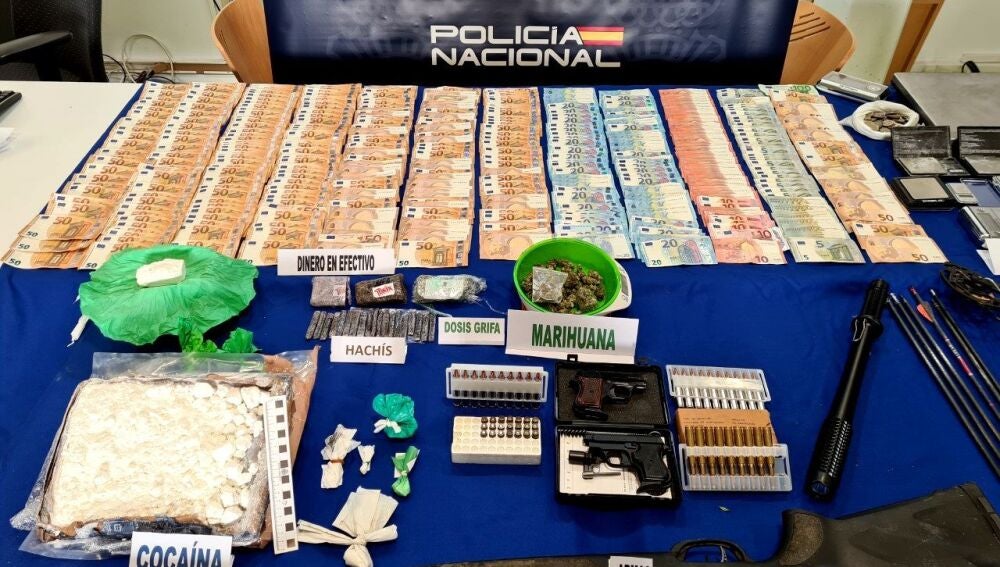 Tras el arresto, se llevaron a cabo varios registros en dos puntos de distribución de droga en Albacete otros 100 gramos de cocaína, 394 gramos de hachís, dinero en efectivo y efectos para la dosificación y distribución de sustancia estupefaciente.