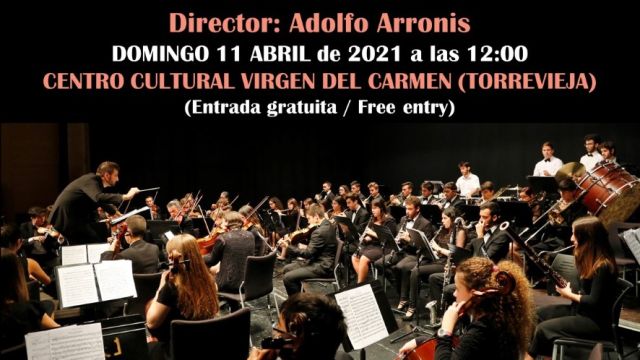 El próximo domingo 11 de abril a las 12:00 tendrá lugar un concierto de la Joven Orquesta Sinfónica de Torrevieja en el Centro Cultural Virgen del Carmen de Torrevieja. La entrada será gratuita.