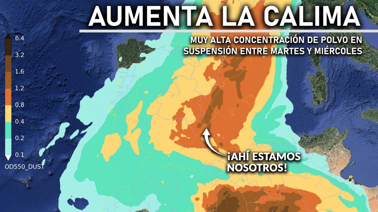¡Aumenta la concentración de polvo en suspensión! Entre hoy y mañana se pronostica la mayor concentración de polvo en suspensión de este episodio.