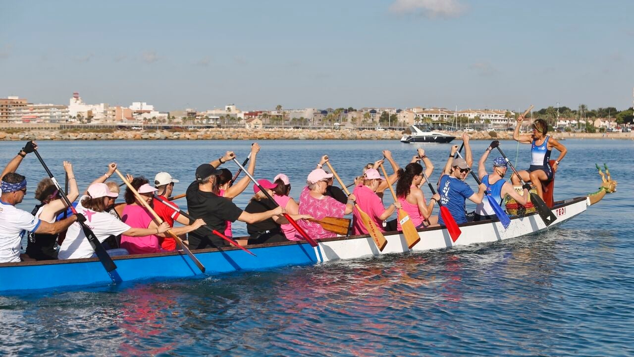 El RCNT y Hospital QuirónSalud Torrevieja, a través de su fundación, han sellado su colaboración de cara a los próximos dos años para desarrollar el proyecto ‘Deporte y Salud en el Mar’, del que ya se benefician pacientes con cáncer de mama a través de las Asociación AFECÁNCER. Así, se ha creado el equipo de Dragon Boat ‘Sal Rosa’, que competirá el próximo 21 de mayo en la Regata de Torrevieja. La directora territorial de Comunicación y Relaciones Externas de QuirónSalud, Rosa Ruiz Aragonés, pone el acento en la parte terapéutica fundamental que supone la rehabilitación a través del remo.