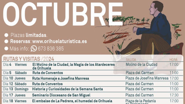Las rutas se irán abriendo semanalmente. Todas las rutas del mes de octubre en la web www.orihuelaturistica.es.