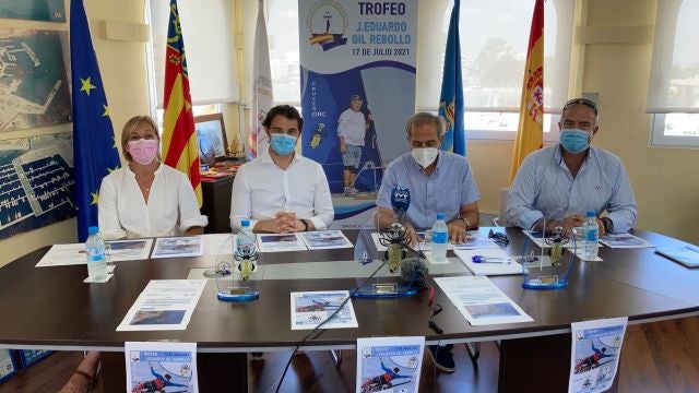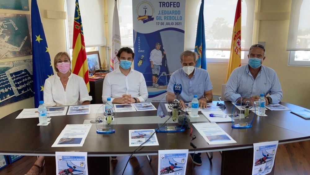 El alcalde de Torrevieja, Eduardo Dolón, la concejal de Deportes, Diana Box, el presidente del Club Náutico Marina Internacional, Antonio Luis Dávalos, y el director de la regata, José Luis Aranzueque, han presentado en la mañana de hoy el I Trofeo J. Eduardo Gil Rebollo, organizado por el Club Náutico Marina Internacional, con autorización de la Federación de Vela de la Comunidad Valenciana.