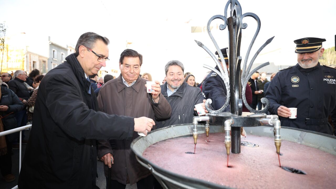 Durante la mañana, los asistentes se han acercado hasta los alrededores de la ermita de Sant Blai para llenar sus vasos del vino que ha ido emanando de la fuente coronada con el escudo de Burriana, una tradición en el municipio que se remonta al 1854. Y para todas aquellas personas que no pueden consumir vino, también se ha distribuido zumo de naranja natural.