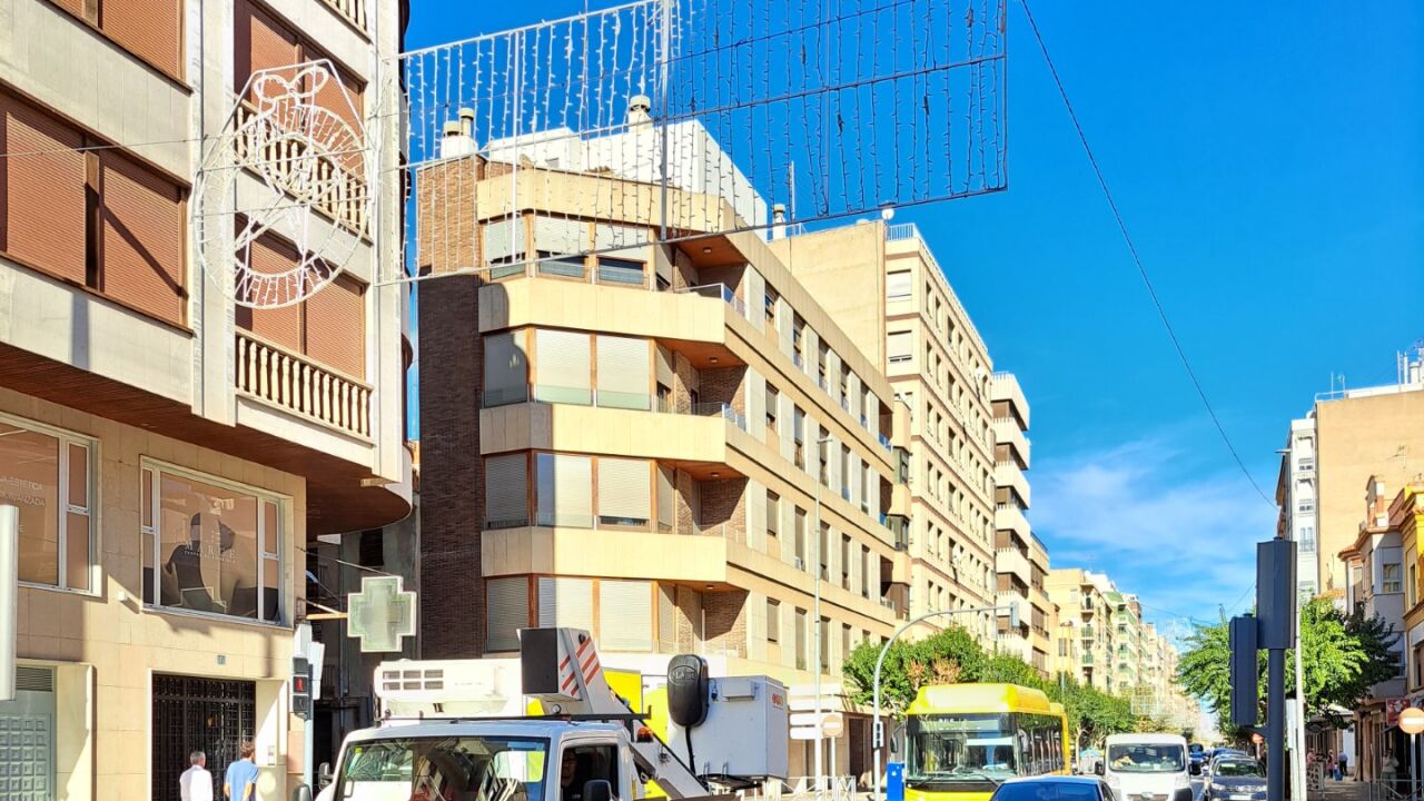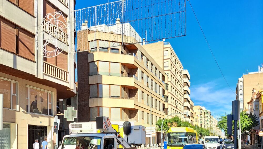 La empresa adjudicataria del contrato de suministro e instalación del alumbrado extraordinario de Navidad y fiestas patronales está llevando a cabo las labores para la colocación de los más de 300 elementos de iluminación, que incluyen arcos, motivos y cortinas luminosas.