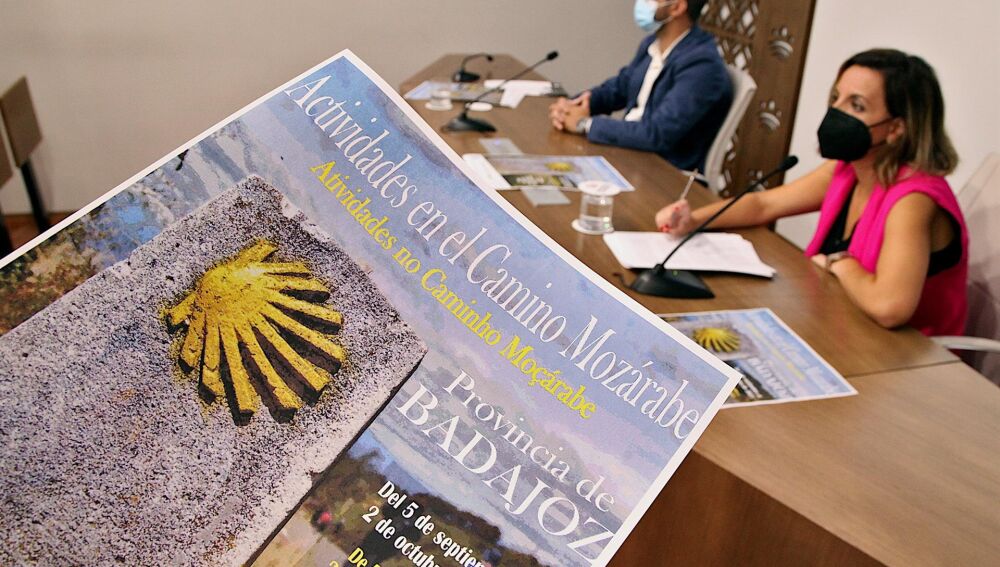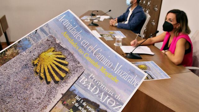 El diputado del Área de Transformación Digital y Turismo de la Diputación de Badajoz, Manuel José González Andrade, y la jefa de la Oficina de Promoción Turística de la institución provincial, Carolina Casado Escolar, han presentado este martes en rueda de prensa estas campañas que buscan dar a conocer los recursos turísticos vinculados a este camino.
