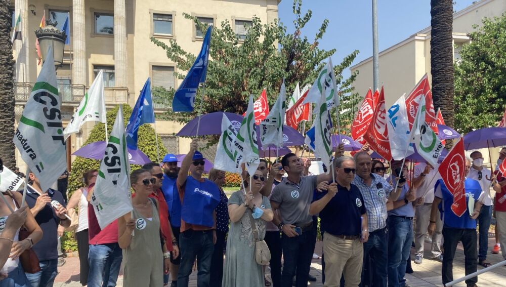Alonso Torres, presidente del sector de Administración General del Estado de CSIF en Extremadura comunica que "se iniciaron las movilizaciones desde 2017 con huelgas y manifestaciones, en las que han sido agredidos, pateados y vilipendiados y dice continuar en la misma situación".