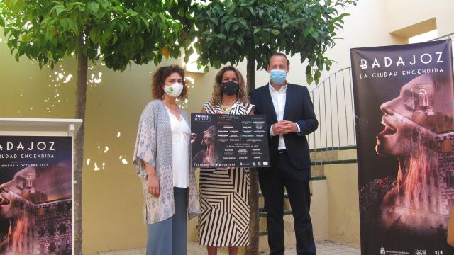 El programa, que arranca este sábado, día 4, a las 21,00 horas con Esther Merino en la Plaza Alta y con la visita denominada 'Belle epoque', ha sido presentado en una rueda de prensa en las Casas Mudéjares por el concejal de Turismo, Jaime Mejías, acompañado de la citada cantaora pacense y de la encargada de las rutas y guía de turismo Maribel Paredes.