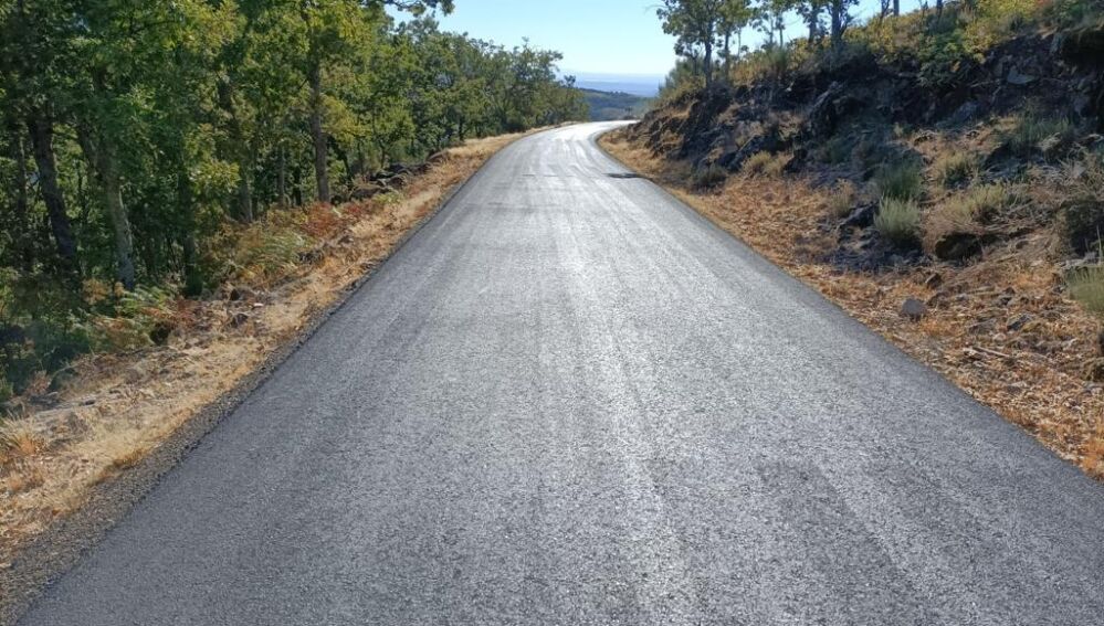 La vuelta llega a esta carretera por la Ex-213 y baja a la N-110 pasando por la travesía de Casas del Castañar. En ella se ha repintado todas las marcas viales. 7.068 euros.