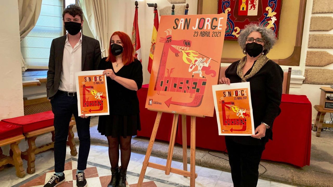 La alcaldesa en funciones, María José Pulido, y la concejala de Festejos, Fernanda Valdés, han presentado esta mañana el programa de actividades con motivo de la celebración de San Jorge, un programa "reinventado" por la situación actual de pandemia y que tendrá como protagonistas a los barrios, con la leyenda de San Jorge, y con talleres y otras actividades para niñas y niños.
