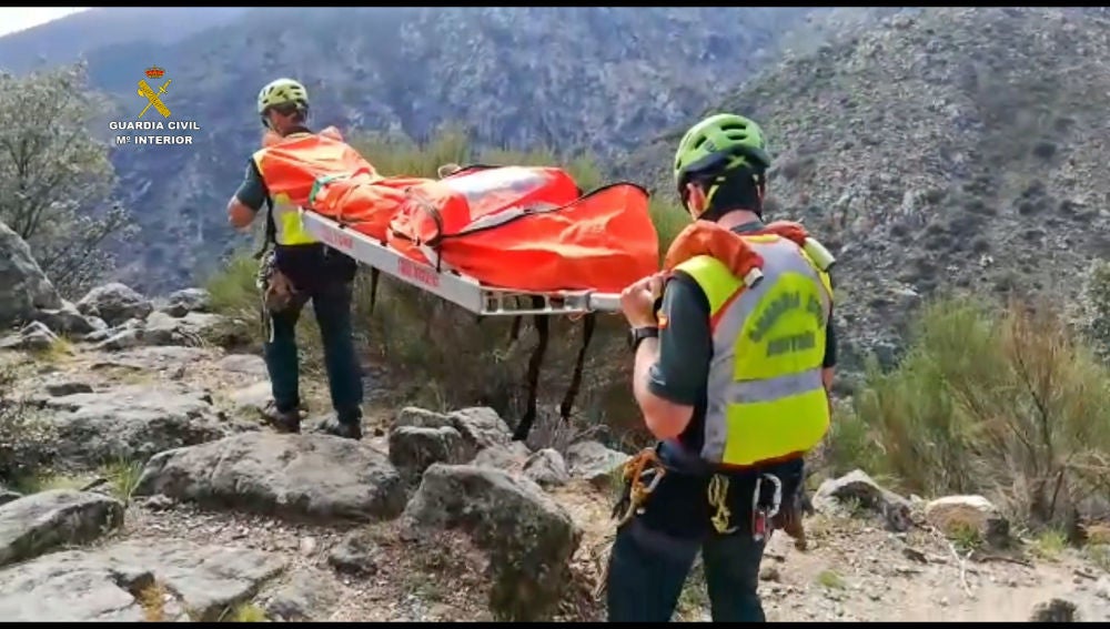 Agentes de la Guardia Civil, pertenecientes al Equipo de Rescate e Intervenciones en Montaña (EREIM) de Arenas de San Pedro (Ávila), junto con un helicóptero del Servicio Aéreo de la Guardia Civil, han rescatado a una mujer que en el día de ayer sufrió un accidente mientras hacía una ruta senderista entre la Garganta Jaranda y el Refugio de las Nieves, en el término municipal de Guijo de Santa Bárbara (Cáceres).