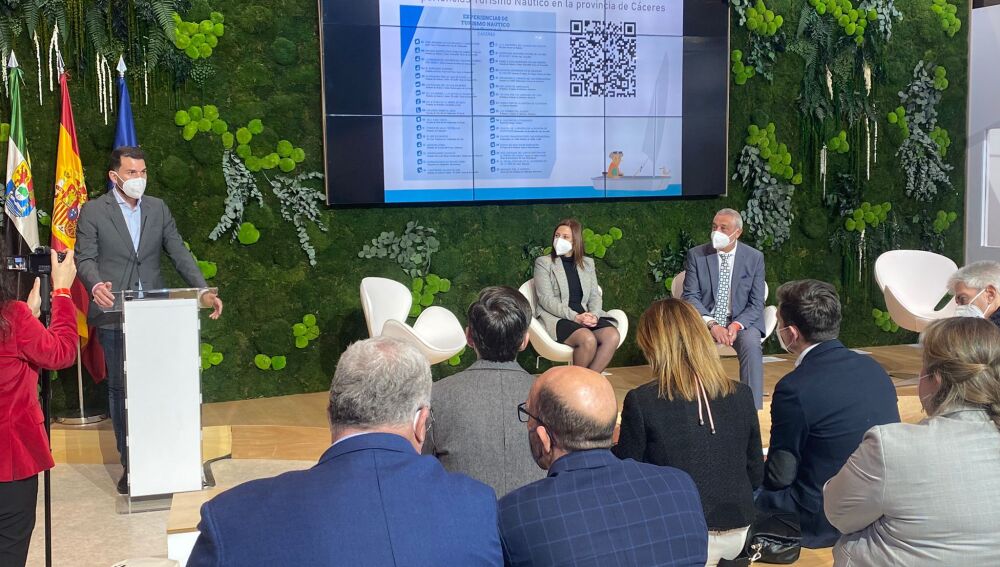 La Diputación de Cáceres ha presentado este miércoles en la Feria Internacional de Turismo (Fitur), que se celebra en Madrid hasta el domingo día 23, su oferta turística de láminas de agua como destino de deportes náutico, pesca deportiva o paseos en barcos ya que, no en vano, la provincia cacereña cuenta con 6.000 hectómetros cúbicos de agua embalsada, 300 kilómetros de ríos navegables y 40 zonas de baño autorizadas.