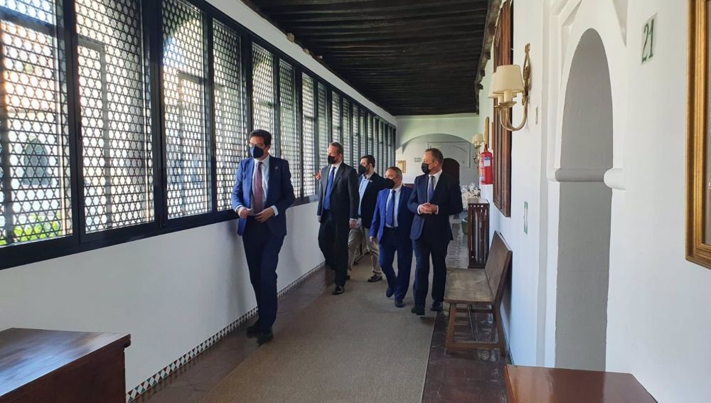 El acto de reapertura del Parador de Guadalupe ha contado con la presencia del secretario de Estado de Turismo, Fernando Valdés, el presidente de Paradores, Óscar López; el director general de Turismo de la Junta de Extremadura, Francisco Martín Simón, y el alcalde de Guadalupe, Felipe Sánchez Barba.