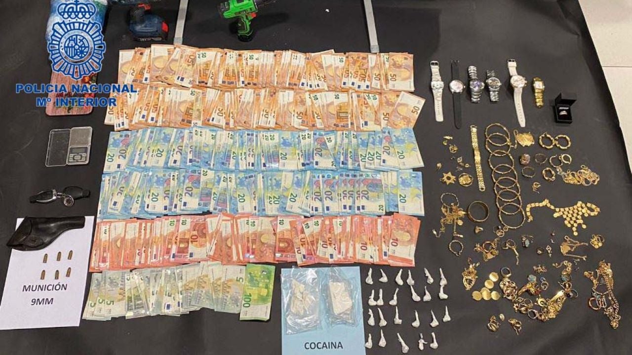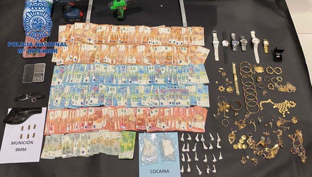 Con la debida autorización judicial, el pasado 9 de abril se procedió a la entrada y registro de la vivienda investigada, interviniendo 135 gramos de cocaína en “roca”; 23 dosis individuales de cocaína; 14.555€ en metálico ocultos en diferentes estancias del domicilio; 700 gramos de oro distribuidos en diversas joyas, valorados en 21.000€; básculas de precisión; y un vehículo de alta gama.