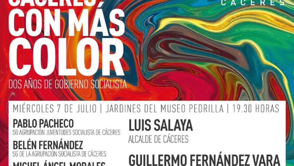El acto tendrá lugar en los jardines del Museo de Historia y Cultura Casa Pedrilla (Ronda de San Francisco, s/n) de Cáceres e intervendrán también Pablo Pacheco, secretario de organización de Juventudes Socialistas de Cáceres; Belén Fernández, secretaria general del PSOE de Cáceres; Miguel Ángel Morales, secretario general del PSOE de la provincia de Cáceres, y Luis Salaya, alcalde de Cáceres.
