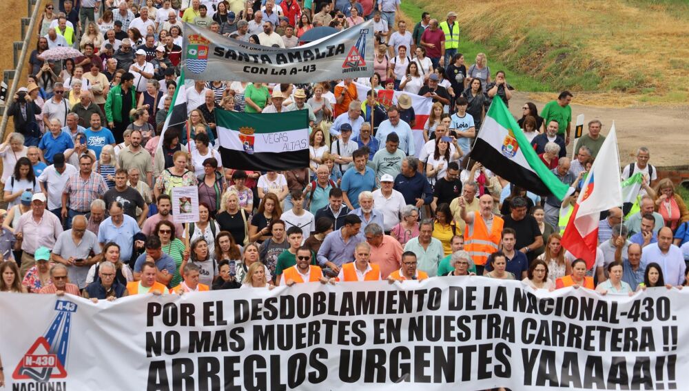 Cientos de personas procedentes de distintos municipios afectados por el trazado de la N-430, se han manifestado este martes en la localidad pacense de Santa Amalia para reclamar al Gobierno central la "urgente conversión" de esta carretera nacional en la Autovía A-43.