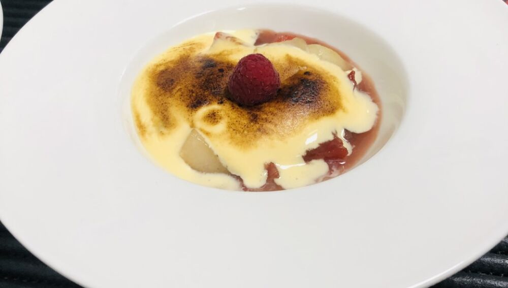 Comenzamos por pelar y limpiar las frutas, cortarlas en mirepoix, ponemos la sartén o el cazo con el aceite de oliva al fuego fuerte y le agregamos las frutas cortadas, una vez estén doradas y bien selladas le incorporamos el azúcar y el licor.