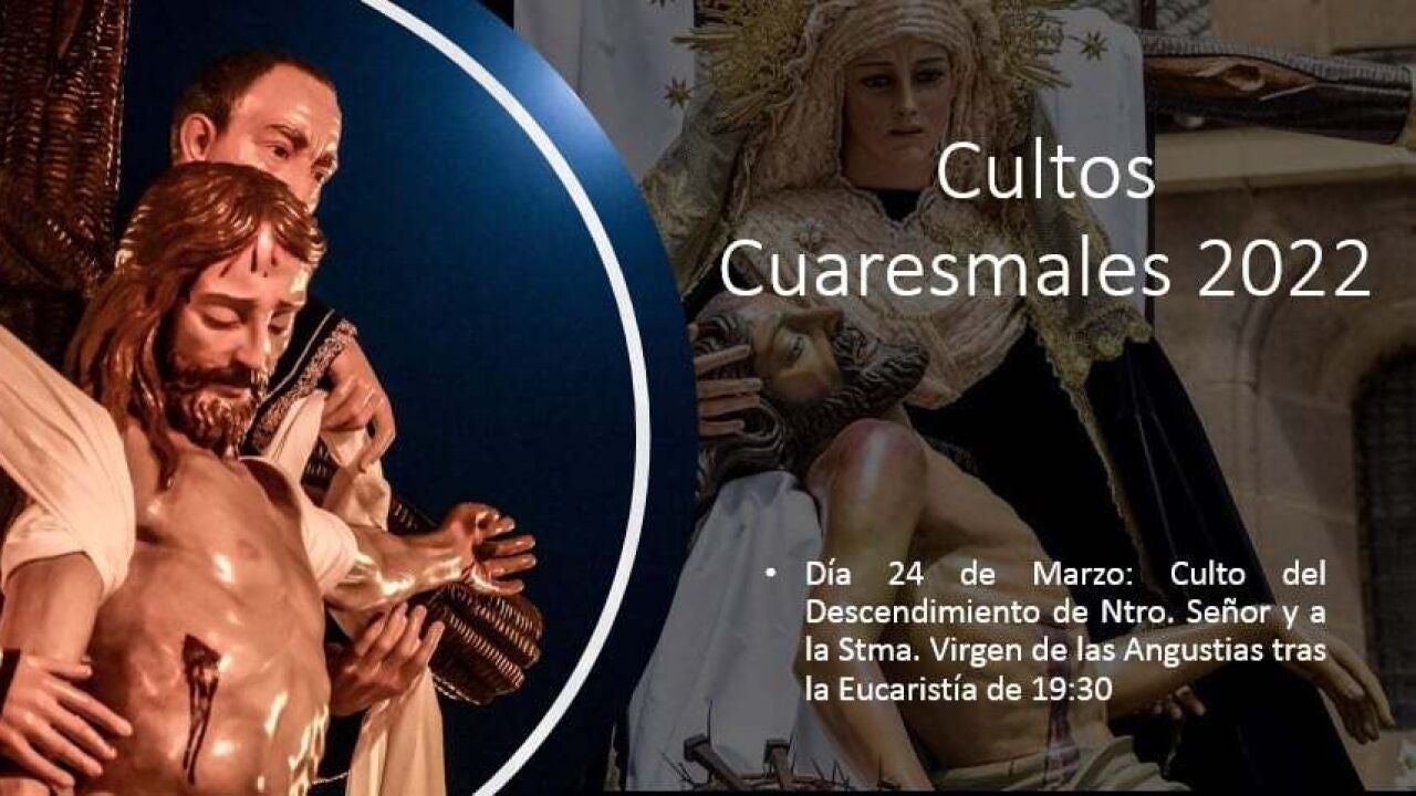 El próximo día 24, jueves, después de la eucaristía de 19,30, tendremos Culto al Descendimiento de Ntro Señor y a la Stma Virgen de las Angustias.