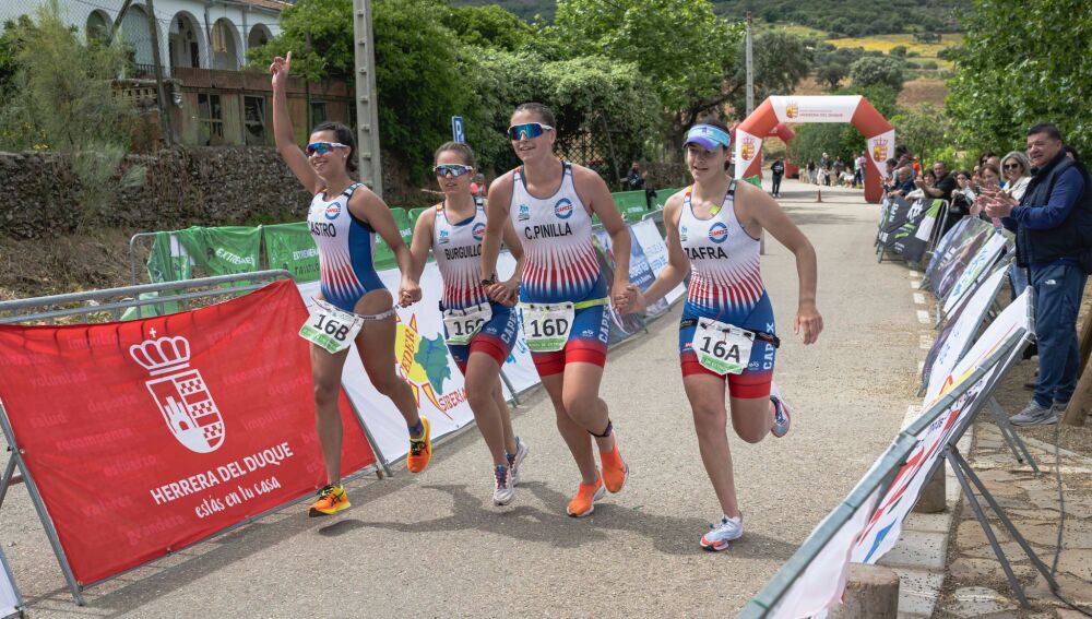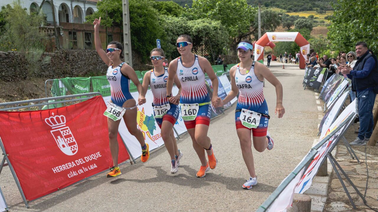 El equipo que se ha proclamado campeón regional femenino de triatlón estaba formado por María Castro Sánchez, Miriam Zafra Crespo, Celia Pinilla Lavado y Marta Burguillos Sánchez.