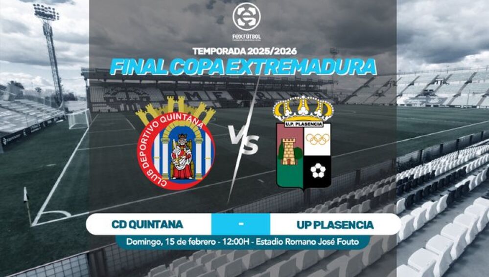 La final de la Copa Extremadura 2025/2026, que enfrentará al CD Quintana y al UP Plasencia, se disputará el 15 de febrero en el Estadio Romano José Fouto de Mérida, según ha anunciado este jueves la Real Federación Extremeña de Fútbol (RFEXF).