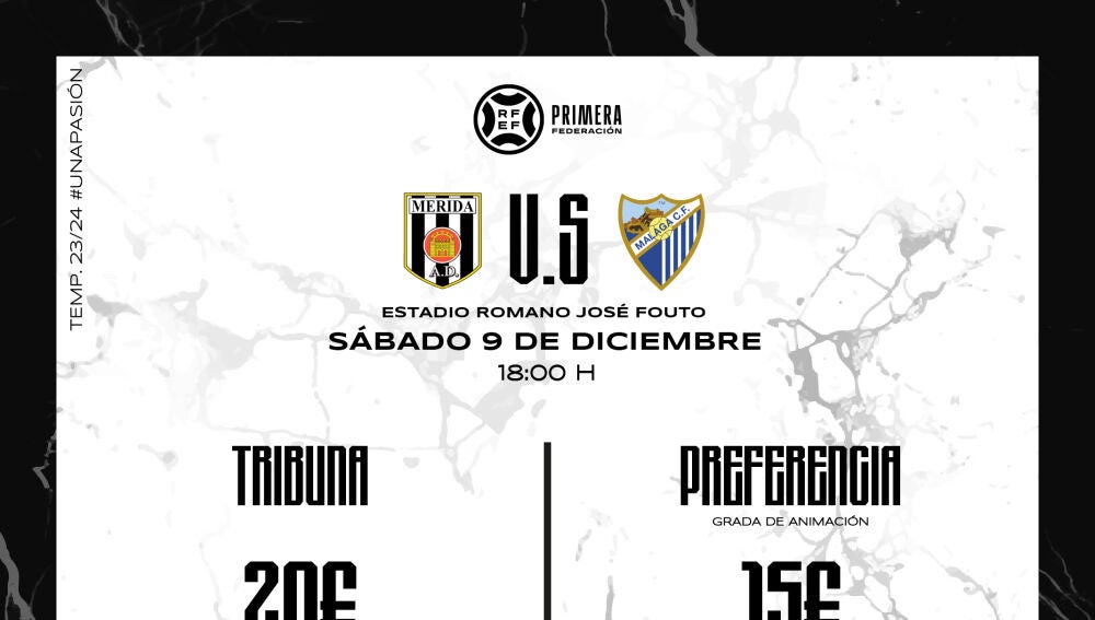Además, las entradas también se pueden adquirir en admerida.compralaentrada.com seleccionando la grada de FONDO NORTE, donde irá ubicada toda la afición malaguista.