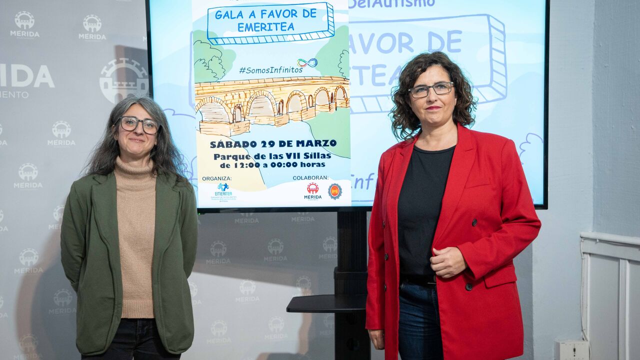 La delegada de Accesibilidad Universal e Inclusión, Susana Fajardo, ha acompañado a la tesorera de Emeritea, Laura Meneses, en la presentación de lo que la delegada ha definido como “la cita de la primavera, la cita con la que empezamos las actividades primaverales en Mérida y que reúne a todos los emeritenses, como es la gala solidaria de de Emeritea”.