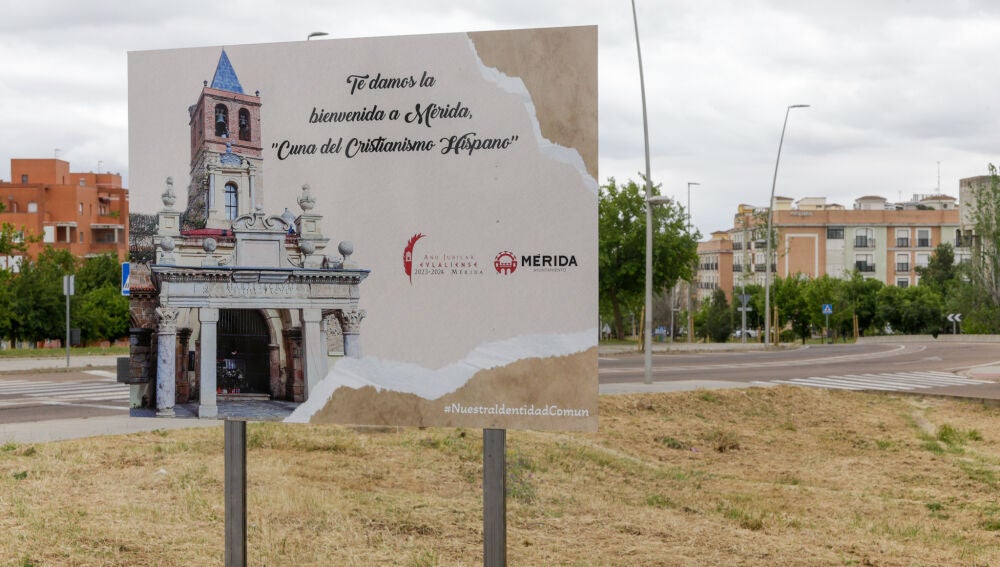 Las entradas a la ciudad ya lucen paneles de bienvenida a la ciudad de Mérida “Cuna del Cristianismo Hispano” con motivo del Año Jubilar