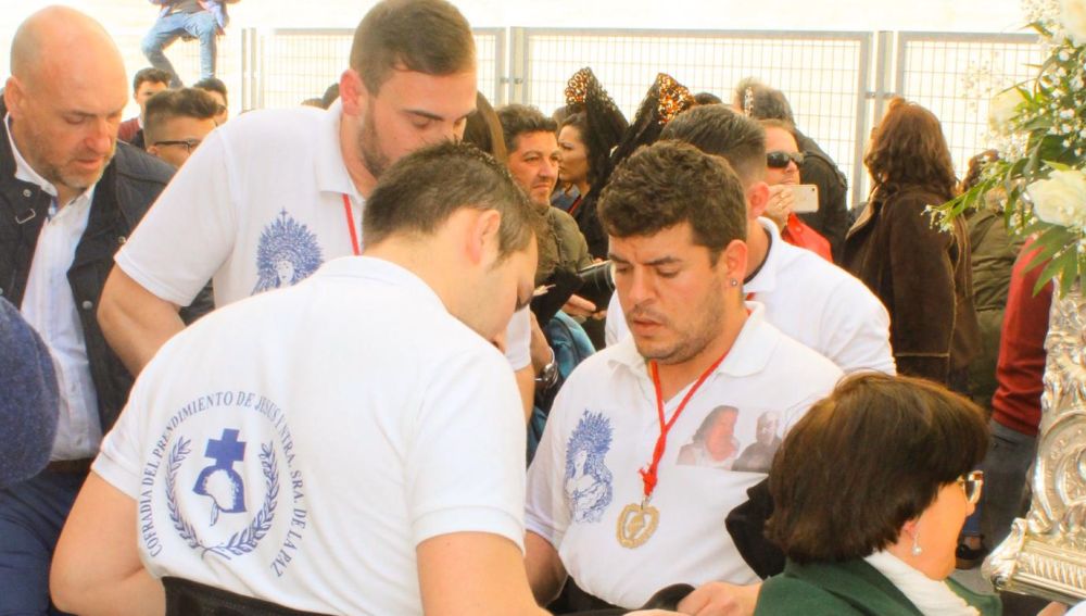 Flores, de 33 años de edad, lleva desde los 17 bajo el paso de Nuestra Señora de La Paz cada Jueves Santo. Además, es hermano de la Cofradía de la Cena donde salió de costalero en sus primeros ocho años. Desde hace tres años, es portador de Jesús Resucitado.