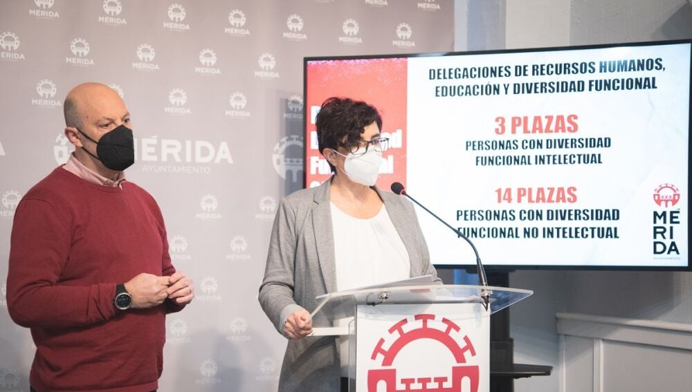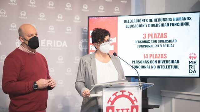 La delegada de diversidad funcional, Susana Fajardo, y el delegado de recursos humanos, Julio César Fuster, han presentado el Plan de Empleo de Diversidad Funcional 2022 que ofertará un total de 17 plazas.