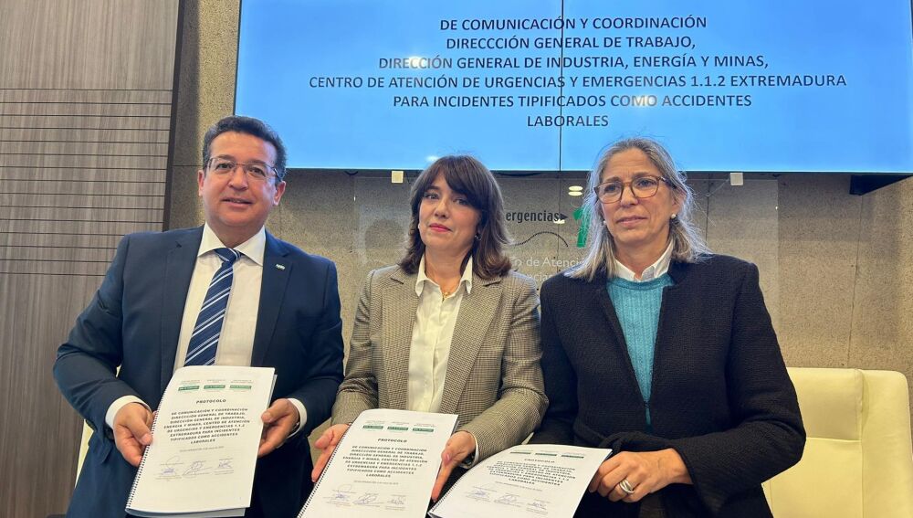 El Centro de Atención de Urgencias y Emergencias 112 Extremadura, en colaboración con la Dirección General de Trabajo de la Junta y la Dirección General de Industria, Energía y Minas de la región, ha firmado este lunes un nuevo protocolo de comunicación de accidentes laborales.
