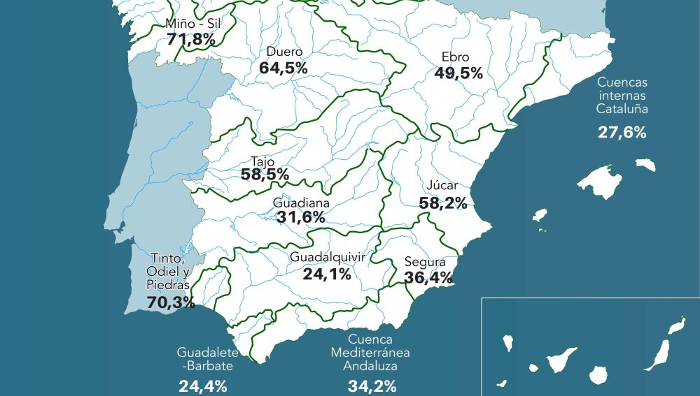 El agua embalsada en las cuencas de Tajo y Guadiana disminuye ligeramente durante la última semana | Ministerio Transición Ecológica