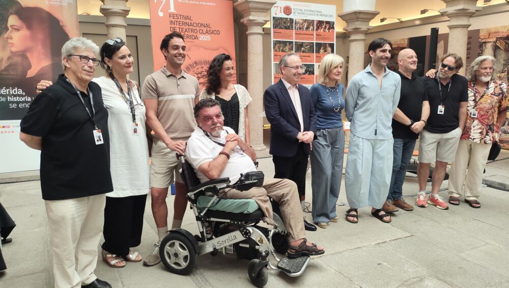 Se trata de una coproducción del Festival de Teatro de Mérida y Pablo Pérez de Larrázaga Bárez, La Bola Producciones, que se ha presentado este lunes en la sede del certamen en presencia de un nutrido grupo de sus protagonistas, junto a la consejera de Cultura, Turismo, Jóvenes y Deporte, Victoria Bazaga, y el portavoz municipal, Julio César Fuster.