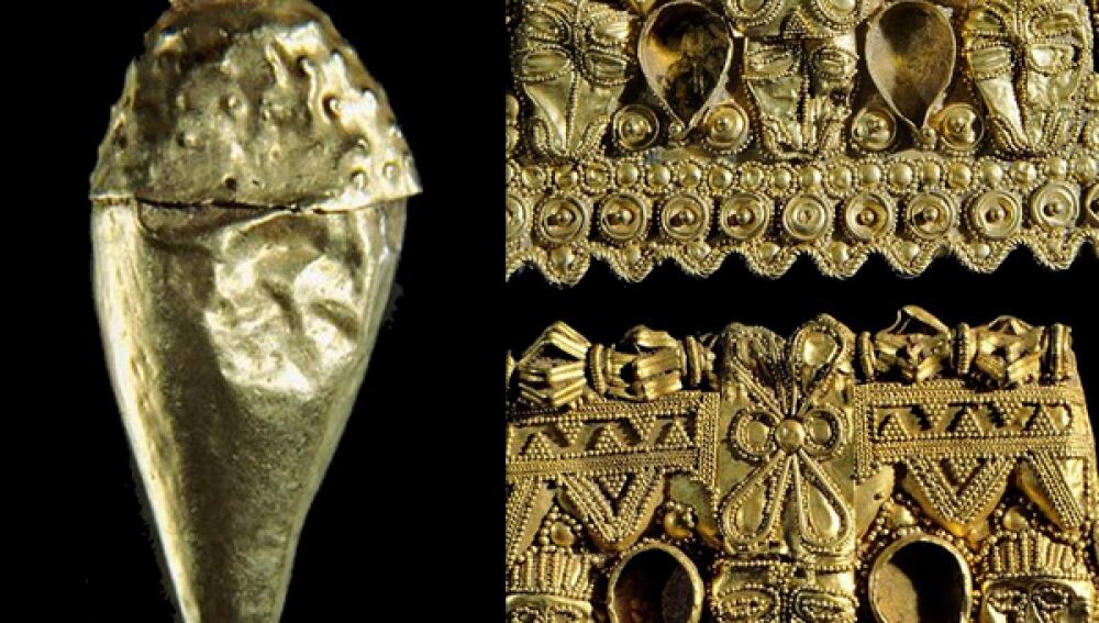 La exposición “El Tesoro de Segura de León. 40 Años después” demuestra cómo en el siglo V antes de Cristo ya se trabajaba con técnicas aún vigentes, como se comprueba por ejemplo en la bellota de oro, utilizada como colgante o para decoración, que forma parte de la muestra.