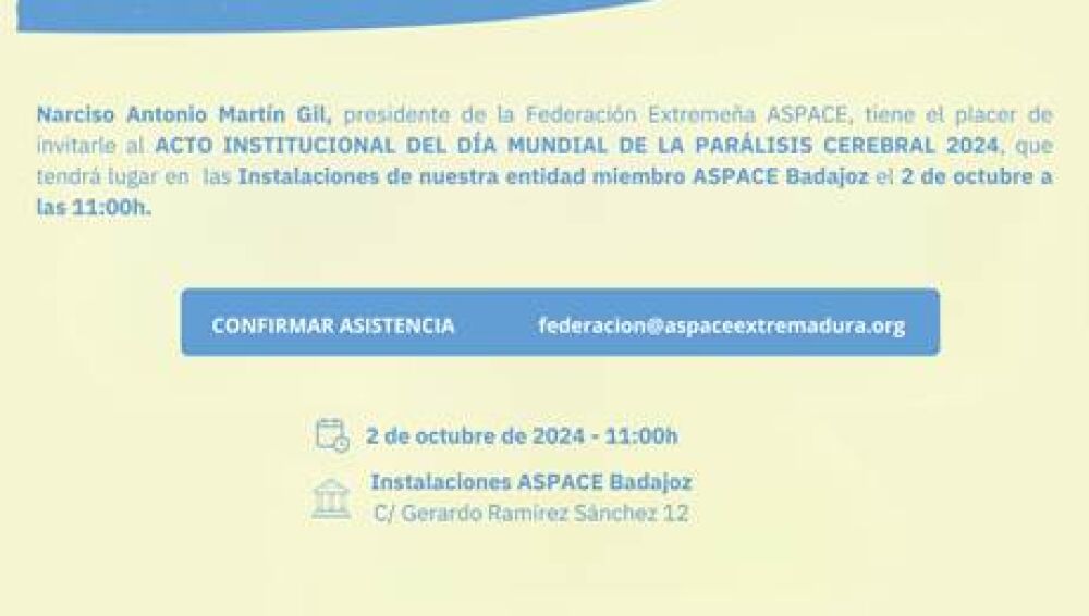 Esta es una de las principales reivindicaciones que realiza la organización coincidiendo con el Día Mundial de la Parálisis Cerebral. De hecho, el próximo 2 de octubre, ASPACE Extremadura celebrará un acto en Badajoz, en las instalaciones de su entidad miembro ASPACE Badajoz, Calle Gerardo Ramírez Sánchez nº12 a las 11:00h. En el acto se dará lectura al manifiesto elaborado con motivo de este día. Un manifiesto en el que se destacan las demandas
