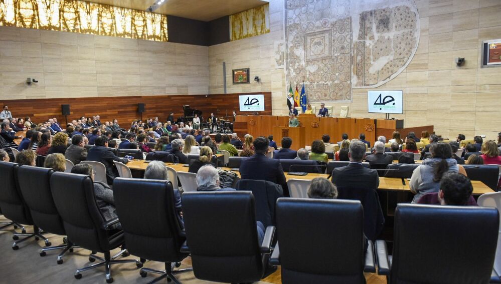 Este sábado fue día de celebración en la región. Se conmemoraban los 40 años desde la aprobación en 1983 del estatuto de autonomía de Extremadura. Con tal motivo la Asamblea de Extremadura acogió un acto institucional para poner en valor estas cuatro décadas.