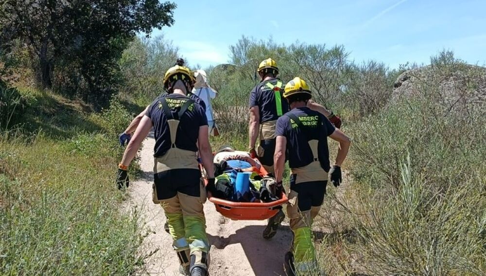 Efectivos del SEPEI Cáceres han rescatado a una mujer tras sufrir una caída en el Monumento Natural de Los Barruecos, en Malpartida de Cáceres.