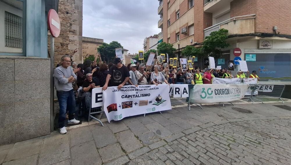 Un centenar de personas se concentran esta tarde frente a la Asamblea de Extremadura, en Mérida, en defensa de la cooperación, al mismo tiempo que la candidata a la Presidencia de la Junta, María Guardiola, ofrece su discurso en el debate de investidura que se celebra en la Cámara regional.