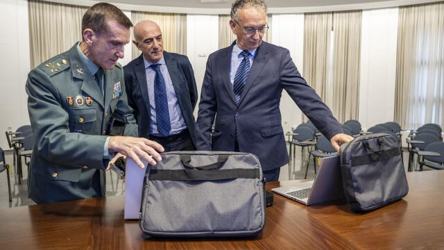El presidente de la Confederación Hidrográfica del Guadiana, Samuel Moraleda, y el general Jefe de la Guardia Civil de Extremadura, José Manuel Santiago, han asistido, acompañados del delegado de Gobierno en Extremadura, José Luis Quintana, a la entrega de este material, que se enmarca en el convenio suscrito entre ambas administraciones en el año 2021.