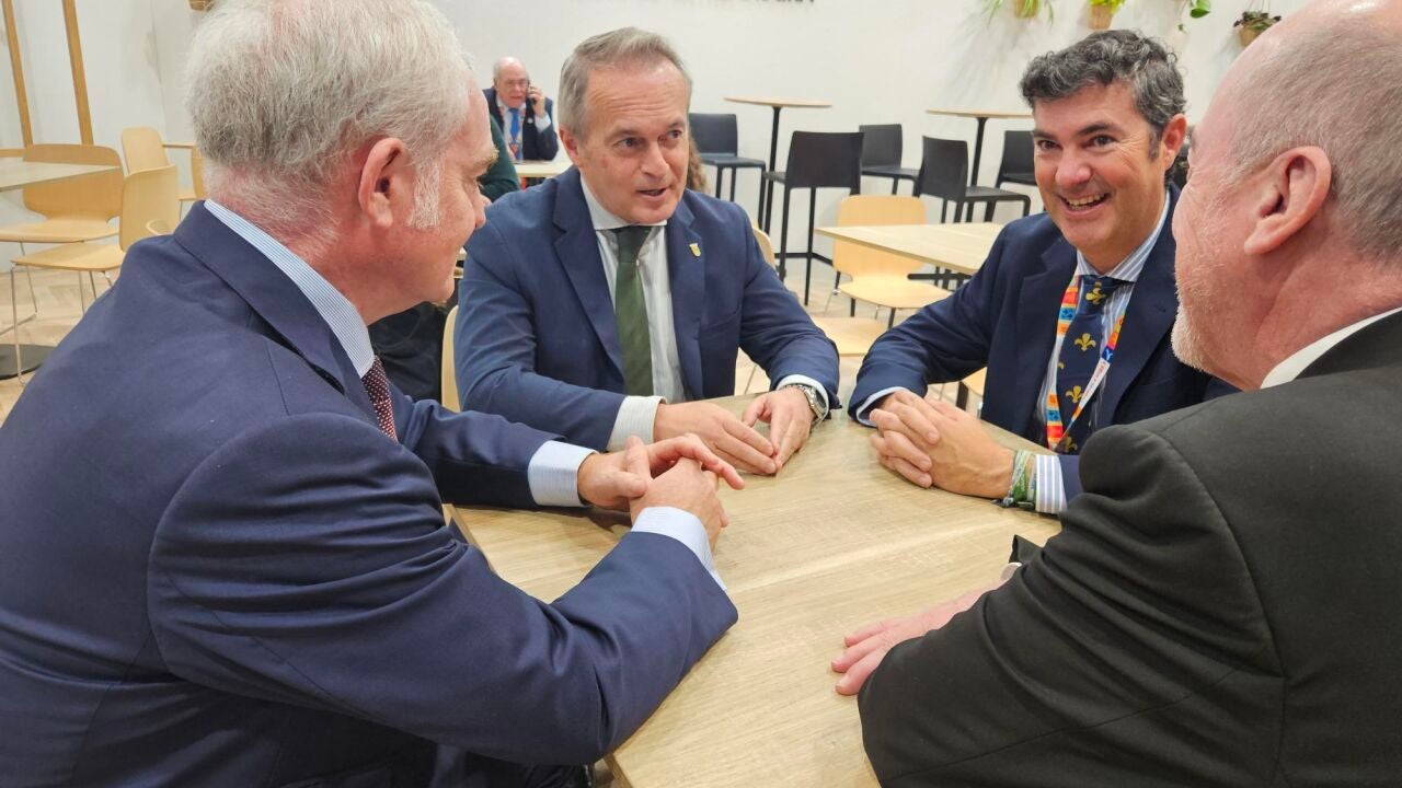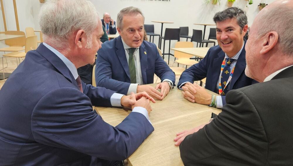 Además, la consejera de Cultura, Turismo, Jóvenes y Deportes en funciones, Victoria Bazaga, ha saludado al consejero y a los representantes de una de las compañías aéreas.