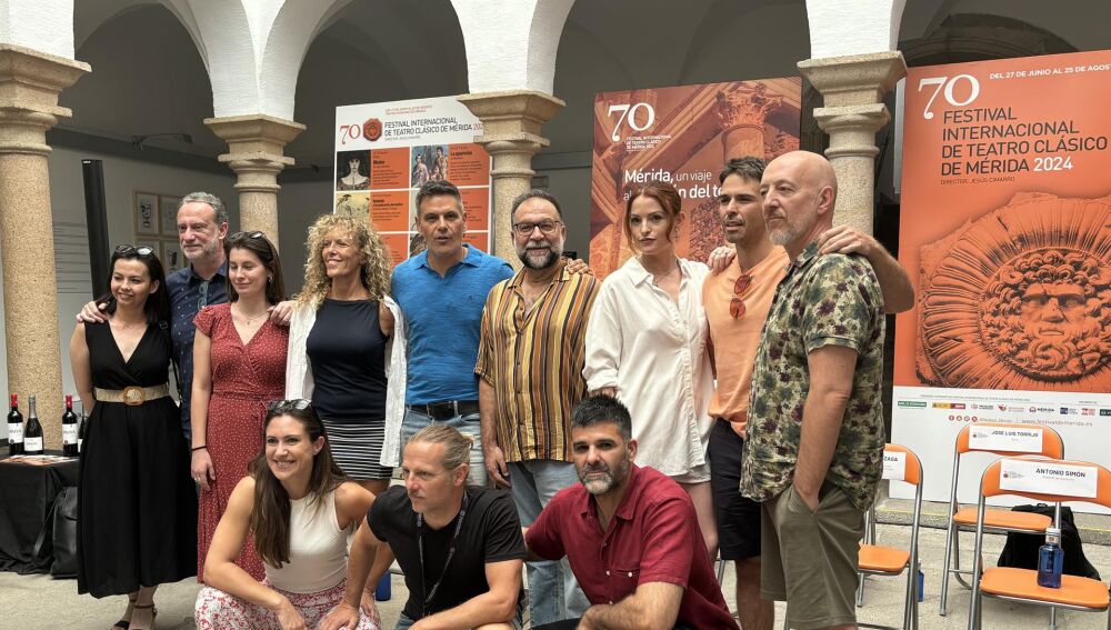 La obra ha sido presentada este lunes en Mérida por su director y parte del reparto, acompañados por el director del certamen, Jesús Cimarro; la consejera de Cultura, Turismo, Jóvenes y Deportes, Victoria Bazaga, y el delegado de Comercio y Emprendimiento del Ayuntamiento de Mérida, Ángel Calle.