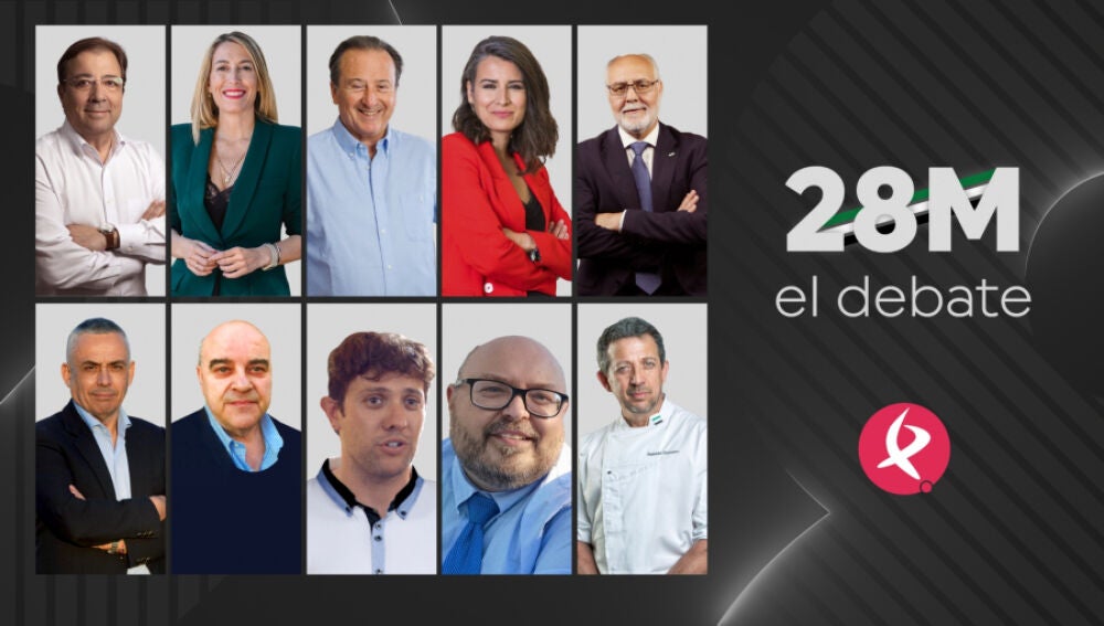 En concreto, el formato reunirá en el mismo plató a los líderes de partidos regionales, que son Guillermo Fernández Vara (PSOE); María Guardiola (PP); Fernando Baselga (Ciudadanos); Irene de Miguel (Unidas por Extremadura); Estanislao Martín (Levanta Extremadura); Ángel Pelayo (VOX); Ricardo Caro (Una Extremadura digna); Luis Blanco (Por un mundo más justo); Juan Miguel González (Extremeñistas), y Antonio Granero (Juntos por Extremadura).