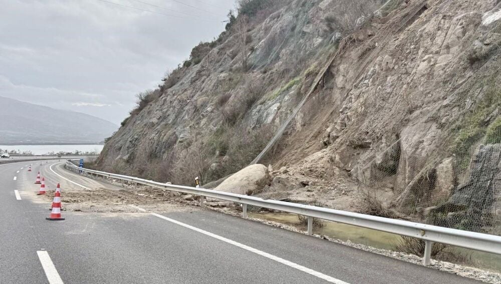 Un desprendimiento de rocas y tierra ha provocado el corte total del tráfico en la autovía A-66, entre los kilómetros 427 y 436, en sentido Sevilla, mientras se ejecutan las labores de mantenimiento y limpieza de la vía.