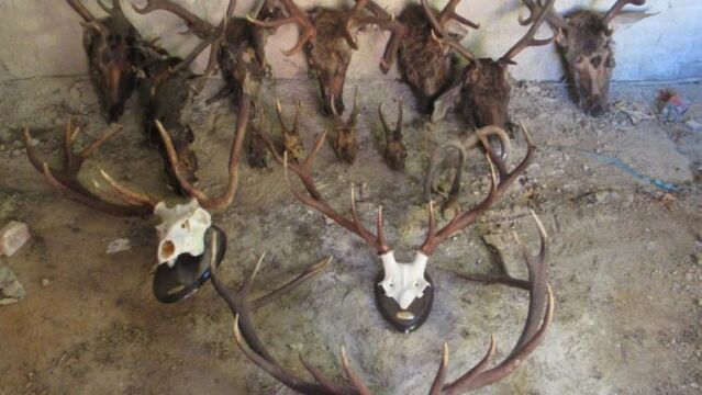 El siguiente día 10 de noviembre, agentes de la Sección del SEPRONA de la Comandancia de Cáceres, realizaron una inspección en varios cobertizos situados en los extrarradios de Aldeacentenera (Cáceres), propiedad de uno de los hombres que habían sido identificados anteriormente, hallando en su interior un total de 13 trofeos de especies de caza mayor, que se encontraban en proceso de descomposición y tratamiento para su posterior naturalización, al haber sido abatidos recientemente.
