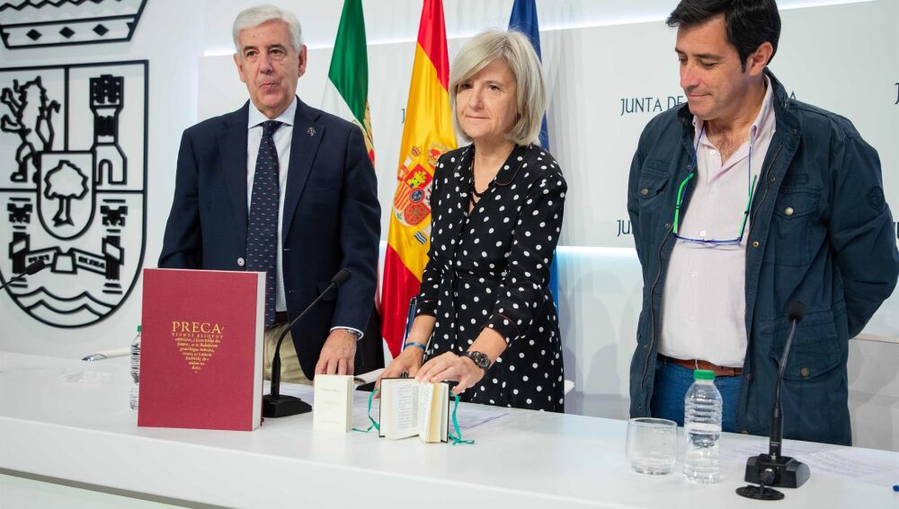 La consejera de Cultura, Turismo, Jóvenes y Deportes, Victoria Bazaga, ha presentado el facsímil 'Praecationes Biblicae', uno de los diez libros hallados en la Biblioteca de Barcarrota que constituye "uno de los tesoros" del patrimonio bibliográfico y cuya publicación se enmarca en las iniciativas del 40º aniversario de la Editora Regional de Extremadura.