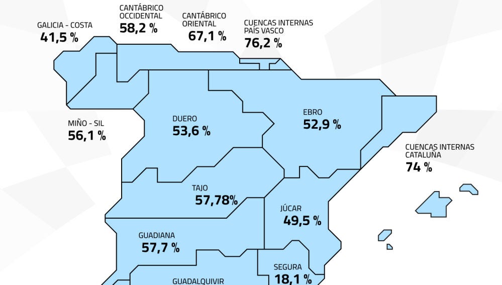 De su lado, en el conjunto nacional la reserva hídrica almacena 29.206 hectómetros cúbicos, por lo que está al 52,1 por ciento de su capacidad, según datos del Ministerio para la Transición Ecológica y el Reto Demográfico