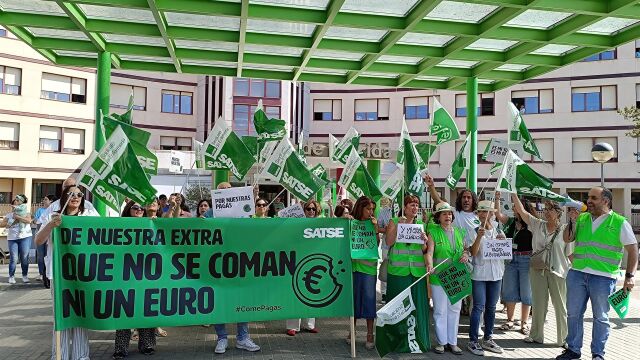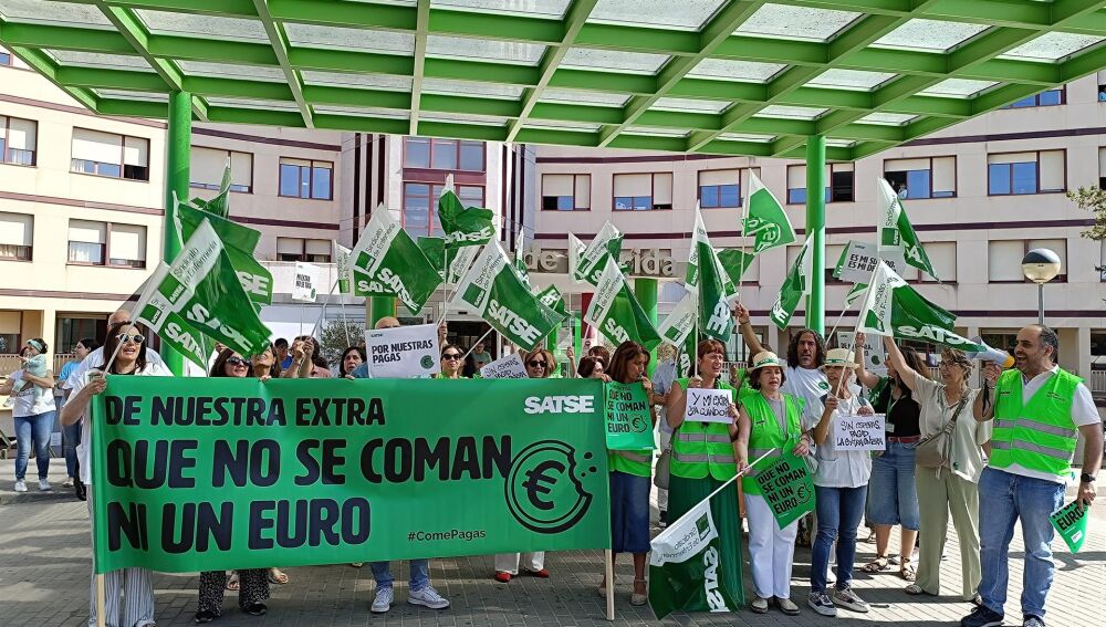 A las puertas del hospital de Mérida, los profesionales del SES han coreado distintas proclamas como 'de mi extra ni un euro', 'Mi extra no se toca' o 'es mi sueldo, es mi derecho' y han reclamado al Gobierno central la recuperación íntegra de sus pagas extras.