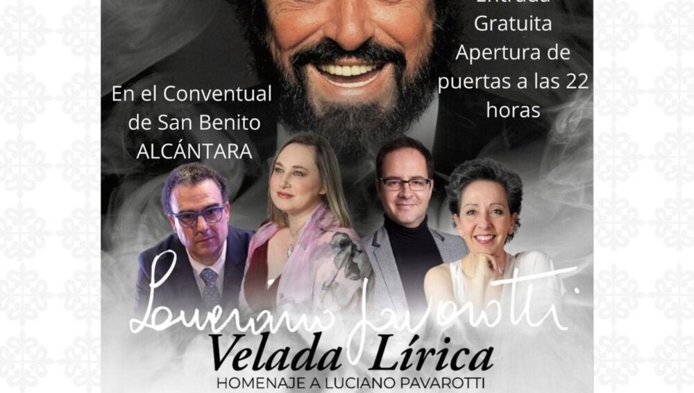 La Velada Lírica por su parte empezará a las 23,00 horas en el Conventual de San Benito, con Simona Pavarotti como protagonista, acompañada por la también soprano Cecilia Lavilla Berganza y el tenor Alain Damas, con el maestro José María Berdejo al piano y la orquesta de cámara Ars Symphony, en un homenaje a su tío-abuelo.